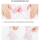 Q: How do I use the hand mask? A: Wash and dry hands thoroughly, then tear open the pouch and apply the gloves. Use the adhesive sticker to seal at the wrist.