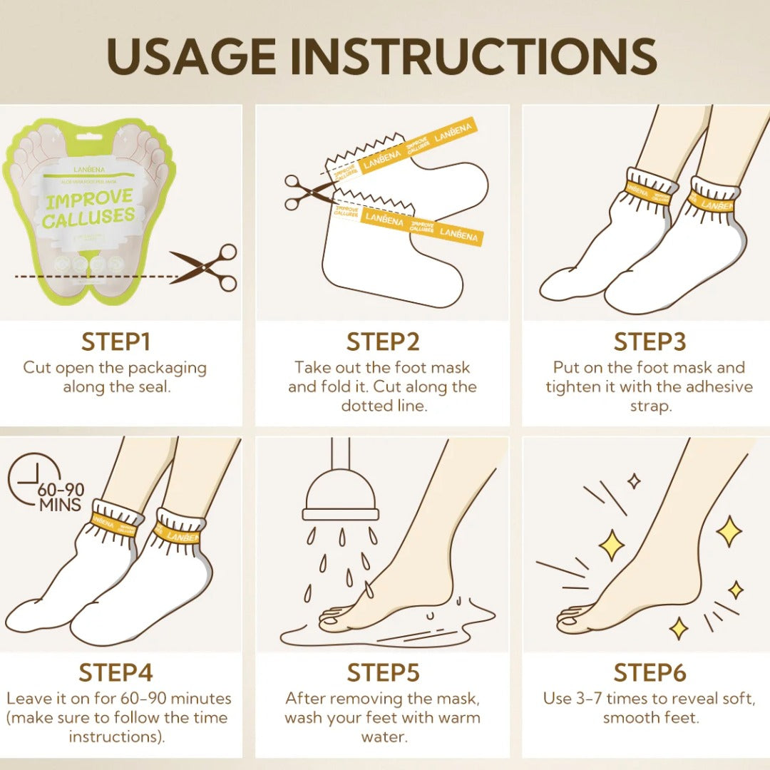 LANBENA Aloe Vera Foot Peel Mask – Gentle Exfoliation & Hydration for Baby-Soft Feet
